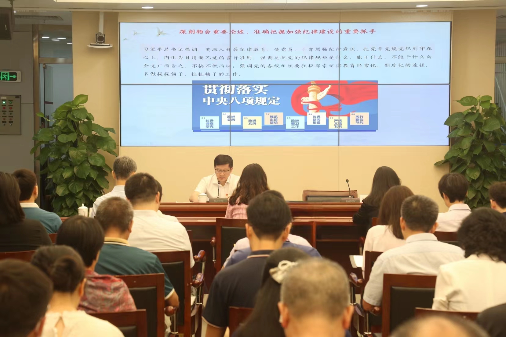 7月9日,91吃瓜 举办警示教育会暨党纪学习教育专题党课。局党组书记、局长姚露以《深入学习贯彻习近平总书记关于全面加强党的纪律建设的重要论述推动我局党纪学习教育走深走实》为题,面向全局党员干部作辅导报告。会议由局党组成员、副局长陈红燕主持,局领导,各处室、局属单位党组织书记,党员干部代表在主会场参会,其他党员干部通过视频收听收看。