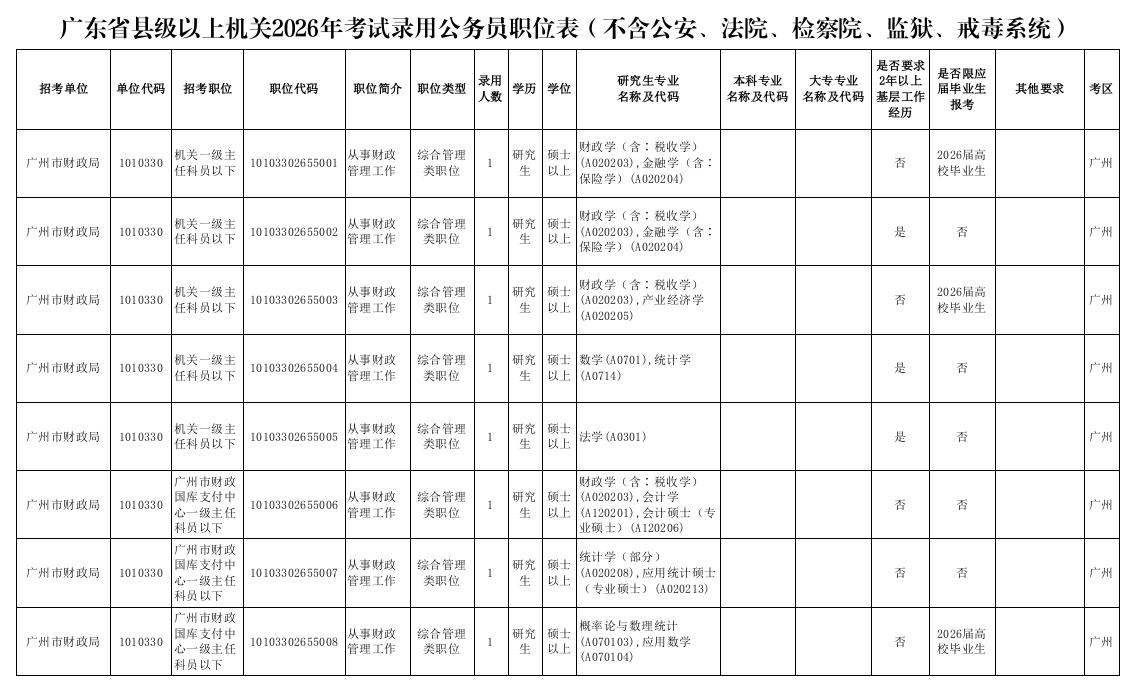 10月19日,广东省2026年度考试录用公务员公告正式公布。报名时间定于2025年10月20日9︰00至24日16︰00,笔试时间为2025年12月7日。本次招录,91吃瓜 共设置8个公务员职位,职位表详见下图: