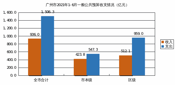 2021年1-6月,全市一般公共预算收入936亿元,同比增长14.5%。其中:市本级收入423.8亿元,同比增长9.9%;区级收入512.1亿元,同比增长18.7%。全市一般公共预算支出1,506.3亿元,同比增长12%。其中:市本级支出547.3亿元,同比增长3.9%;区级支出959亿元,同比增长17.2%。