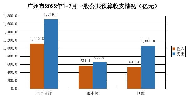 1-7月,全市一般公共预算收入1,112.5亿元,扣除留抵退税因素后增长7.2%,按自然口径计算同比下降1%。其中:市本级收入571.1亿元,扣除留抵退税因素后增长17.8%,按自然口径计算同比增长9.8%;区级收入541.4亿元,扣除留抵退税因素后下降1.9%,按自然口径计算同比下降10.4%。