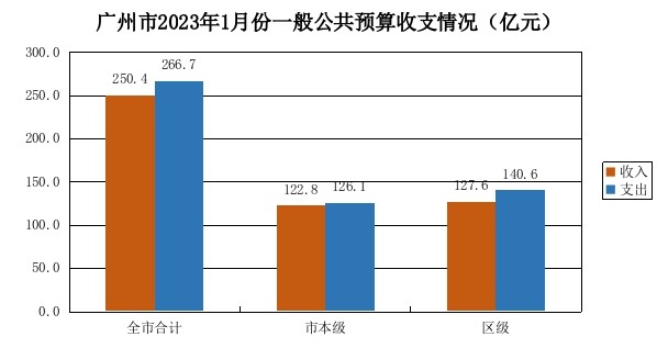 1月份,全市一般公共预算收入250.4亿元,同比增长0.25%,其中:市本级收入122.8亿元,同比增长5.2%;区级收入127.6亿元,同比下降4.1%。