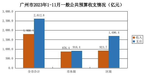 1-11月,全市一般公共预算收入1,800亿元,完成年初预算95.7%,同比增长6.1%。其中:市本级收入876.4亿元,同比增长3.5%;区级收入923.7亿元,同比增长8.7%。
