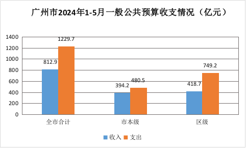 1-5月,全市一般公共预算收入812.9亿元,增长1.7%。其中:市本级收入394.2亿元,下降1.2%;区级收入418.7亿元,增长4.5%。